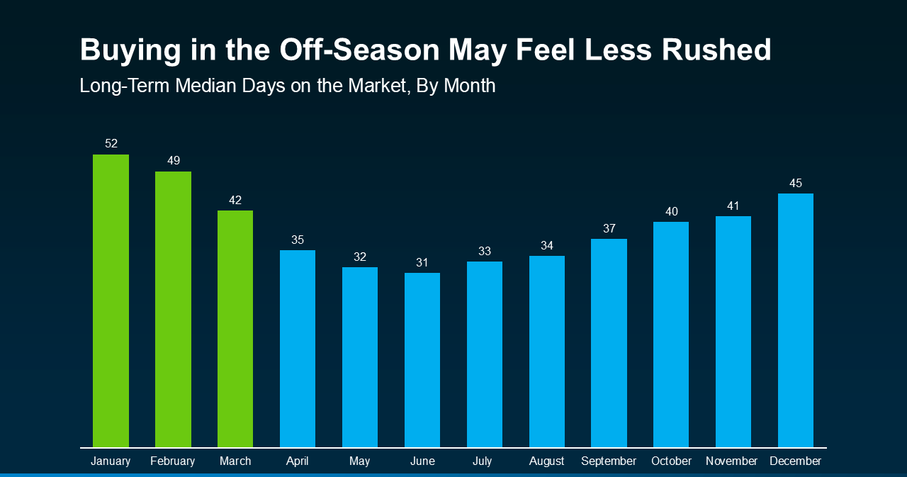 Plus, when demand is lower, sellers often feel more pressure to work with serious buyers. This could give you an edge to negotiate terms that work best for your situation.